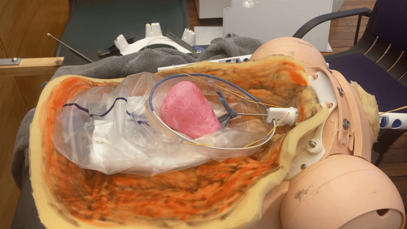 Through testing, we received feedback that cutting lines were deflecting to the side of the specimen before engaging into the tissue. I developed a guiding tunnel with the aim to shorten the distance the lines could deflect during cutting. These tunnels underwent many iterations throughout their development. The main avenues of development were rigidity, shape, and size. Due to the spectrum of specimen size, it made sense to make the tunnels flexible so they form to the shape of the specimen.