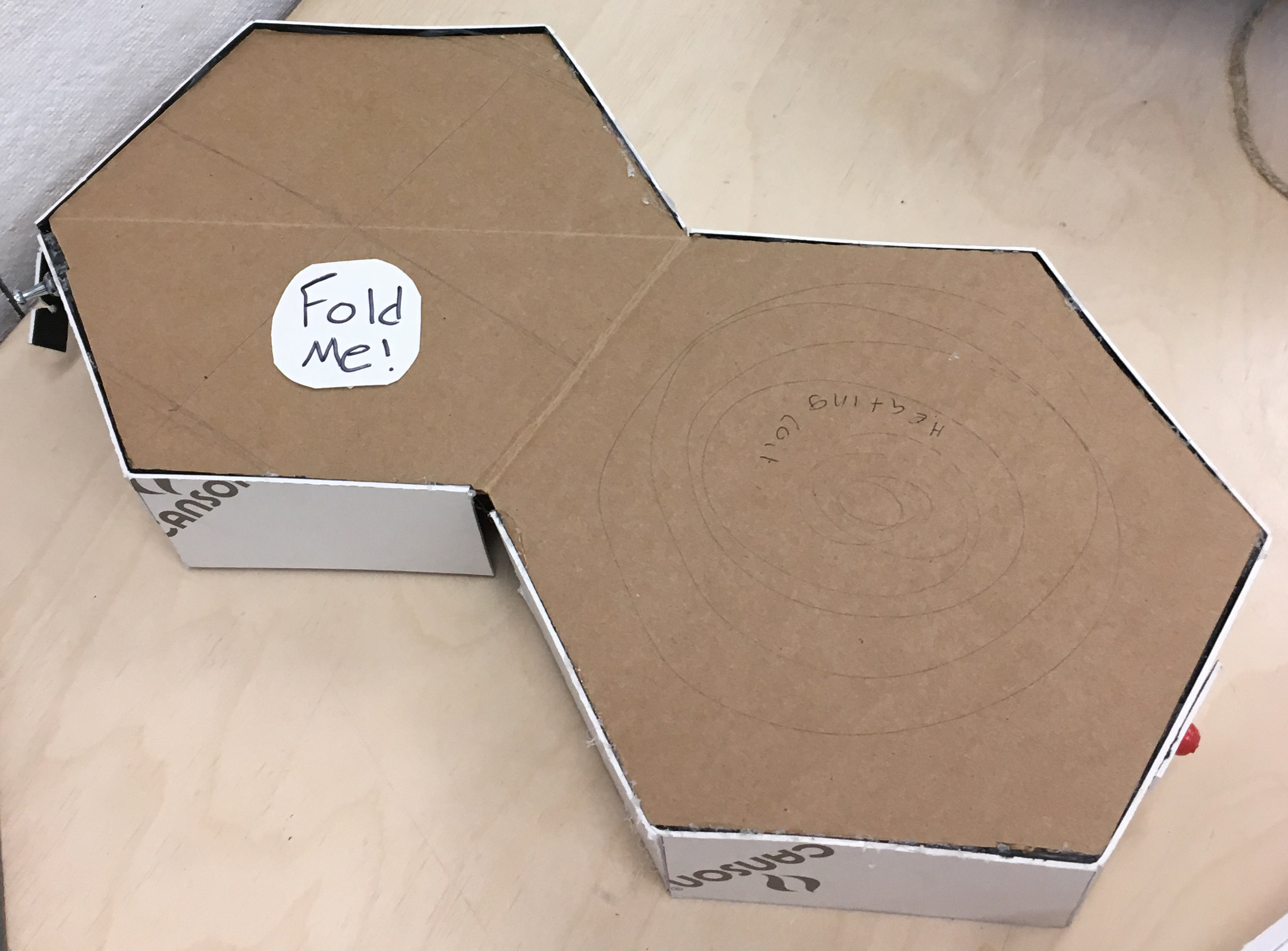 Reevaluating the the shape of my product and what that shape communicates to the user—the hexagonal shape, initially invoked for its efficiency, could have a detrimental effect on the intuitive user experience I sought to create because it didn’t have a clear orientation. Where there is a circular shape in the center, I adapted the outer silhouette from a Reuleaux triangle to mirror and extend that visual aspect and reasoned that a triangular shape was easier to orient than a hexagonal shape.